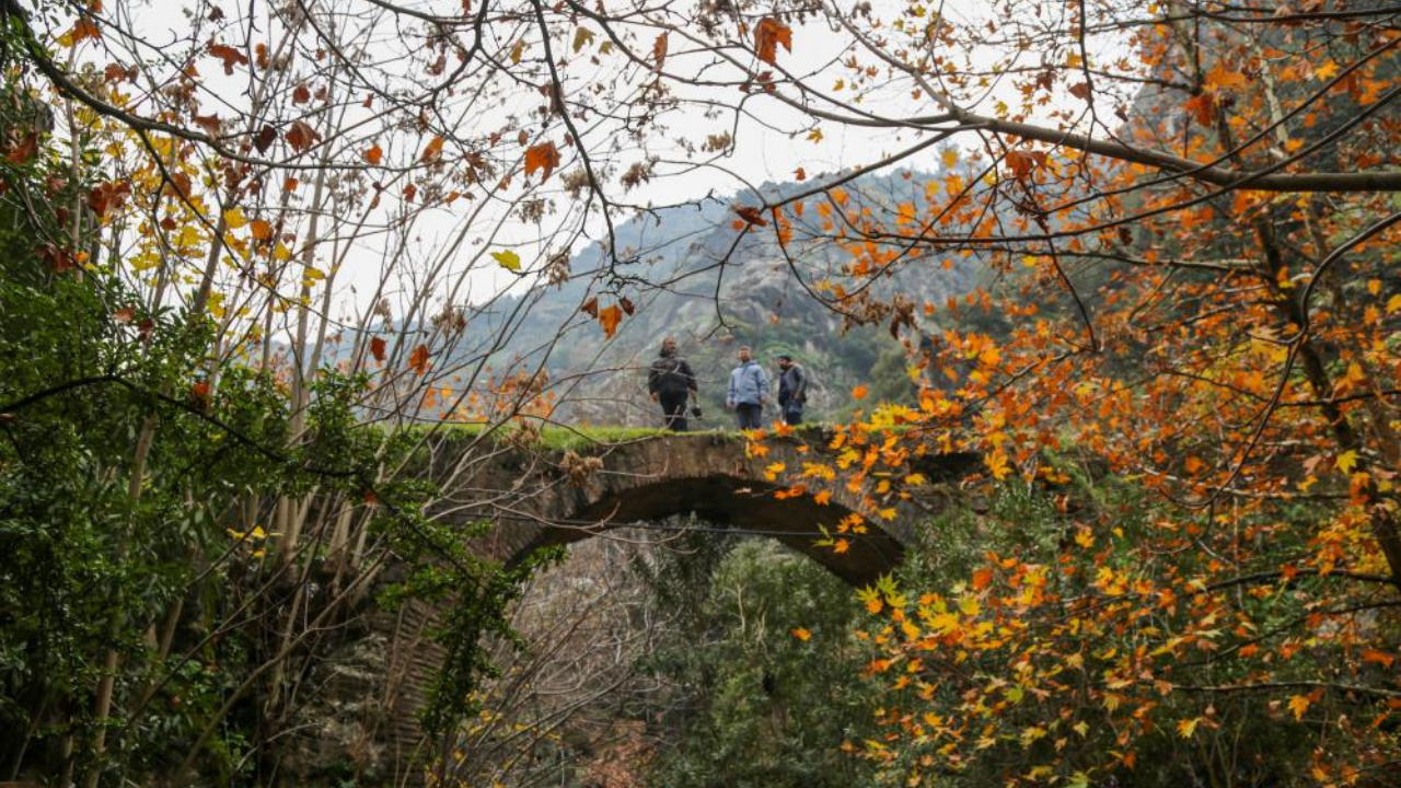 Manisa’da, Spil Dağı eteklerindeki vadiden doğarak şehir merkezinden geçip Gediz Nehri’ne dökülen ve halk arasında Çaybaşı Deresi olarak bilinen Kumludere, aralık ayında da kartpostallık görüntüler sunuyor. Ağaçlardan dökülen yaprakların dere yatağını boydan boya kapladığı manzara, doğaseverlerin ve fotoğraf tutkunlarının ilgisini çekiyor.