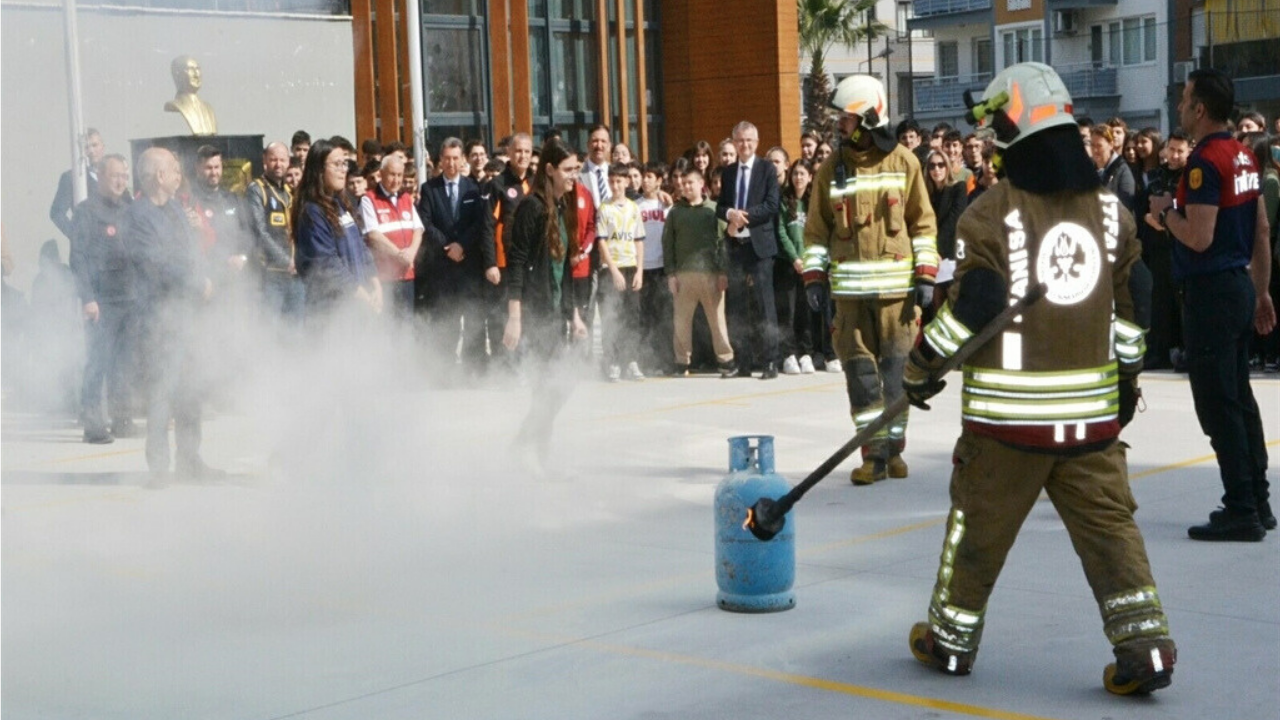 Deprem tahliyesinin ardından Manisa Büyükşehir Belediyesi İtfaiyesi tarafından yangın tatbikatı gerçekleştirildi.