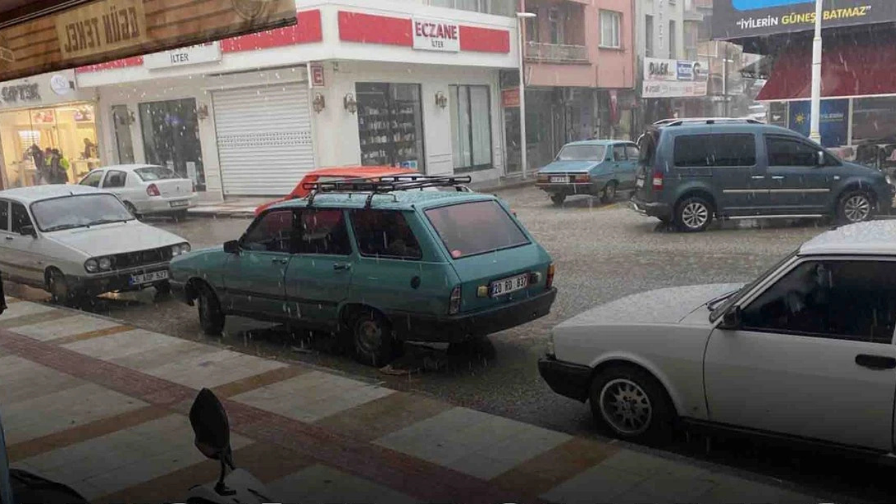 Kısa sürede etkili olan dolu yağışı nedeniyle ilçe merkezinde bazı cadde ve sokaklar beyaz örtüyle kaplandı.