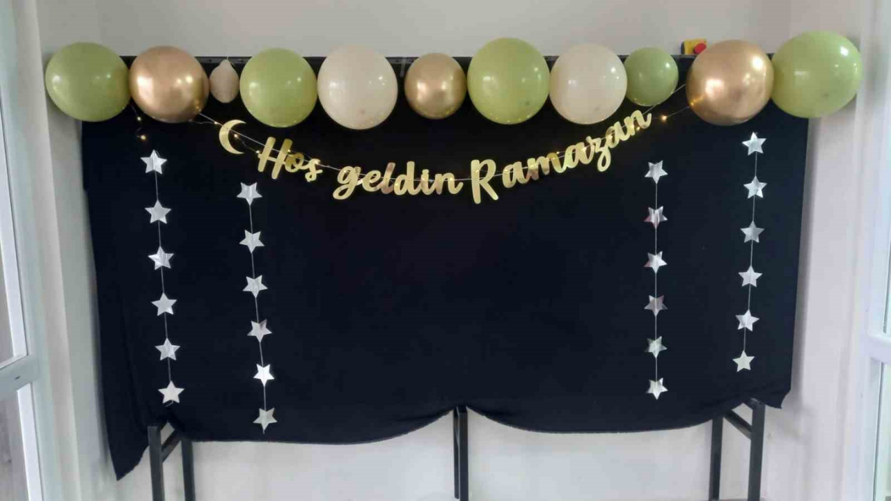 Manisa'nın Sarıgöl ilçesindeki Şehit Esin Akay Ortaokulu’nda Din Kültürü ve Ahlak Bilgisi öğretmeni Bahar Akdağ ile öğrenciler, okul salonunda Ramazan ayına özel bir etkinlik panosu hazırladı. Pano “Hoş Geldin Ramazan” yazısı ve balonlarla süslenerek Ramazan Köşesi oluşturuldu.