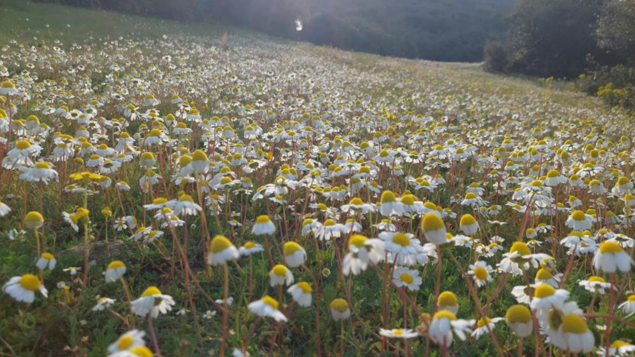 Manisa'nın Sarıgöl ilçesinde, şubat ayında etkili olan yağışların ardından doğa adeta canlandı. Sarıgöl’e bağlı Baharlar ve Emcelli mahalleleri arasında bulunan Olcak mevkiindeki dağ yamaçları, papatya ve çeşitli kır çiçekleriyle kaplandı. Görüntüleriyle ziyaretçilerin ilgisini çeken bölge, doğa tutkunları için adeta bir renk cümbüşü sunuyor.